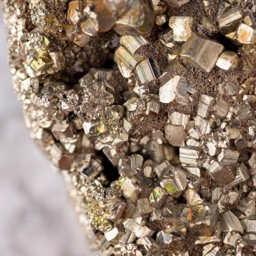 Pyrite is a common sulfide mineral composed primarily of iron and sulfur, typically occurring as metallic yellow crystals with a distinctive reflective surface. It forms in a wide range of geological